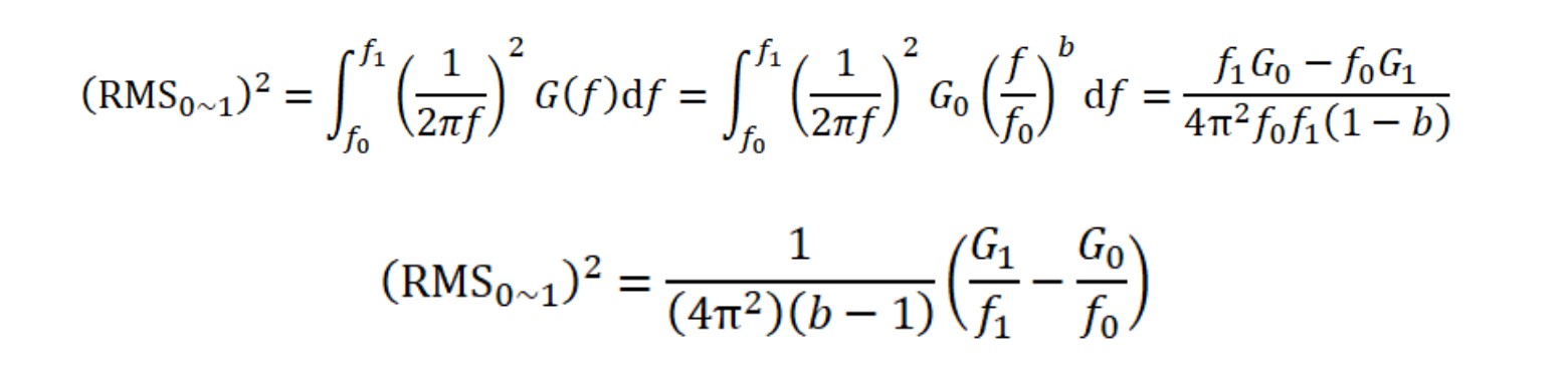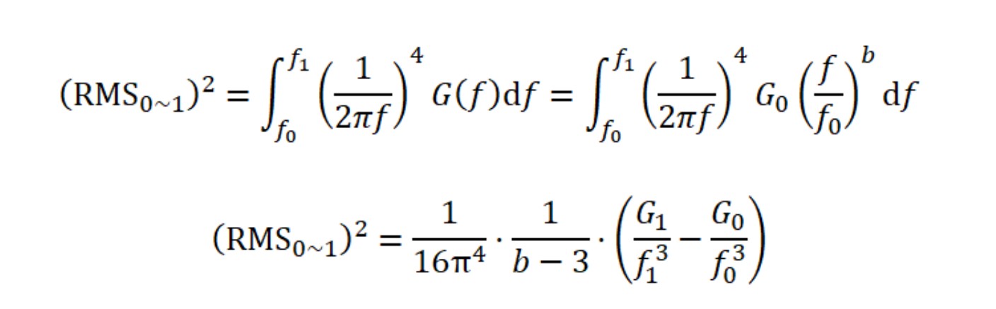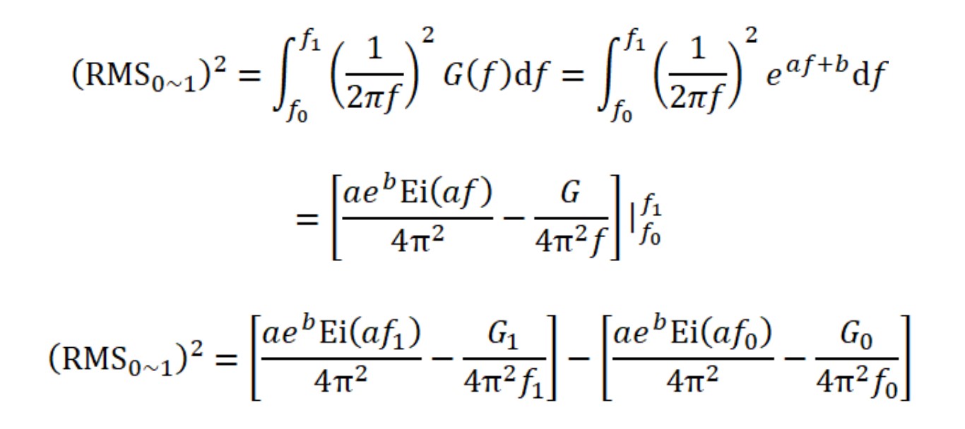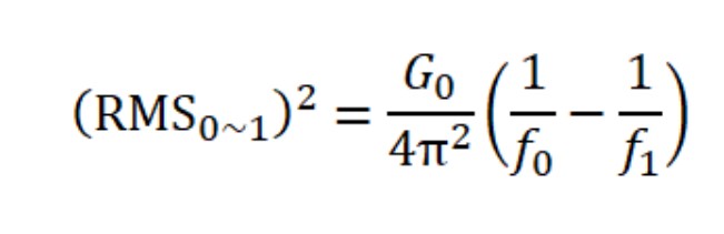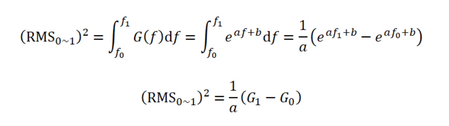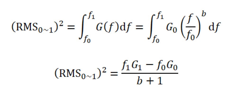 PSD is defined as a series of breakpoints (fi, Gi), so the total RMS is calculated as: